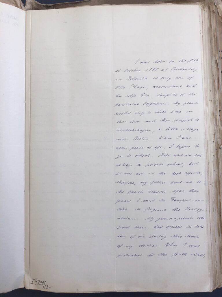 1912年4月10日の日付を持つこの自己紹介によると、プラーゲがライヒェンベルクに住んでいたのは、実はそう長くはないようで、その後両親はベルリン近郊の小村フリードリヒスハーゲンに移り住んだ。1910年の夏には東洋言語ゼミナルの半年のコースを修了しており、わずかな期間で通訳の国家試験も合格したようだが、それはまた次回。